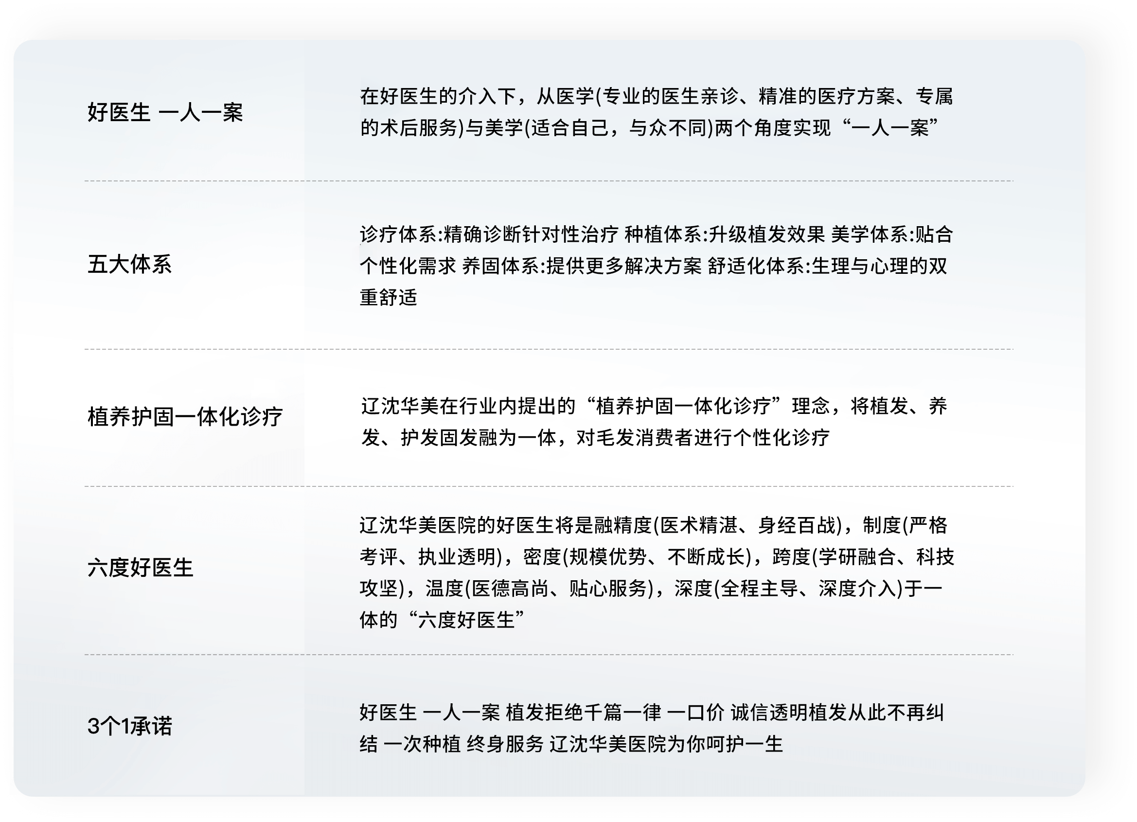 “更有植发、养发、护发、固发四位一体一站式的诊疗服务,自建院起,辽沈华美就十分重视医师人才的培育,现已汇聚全国多名植发经验丰富、技术一流的医师,